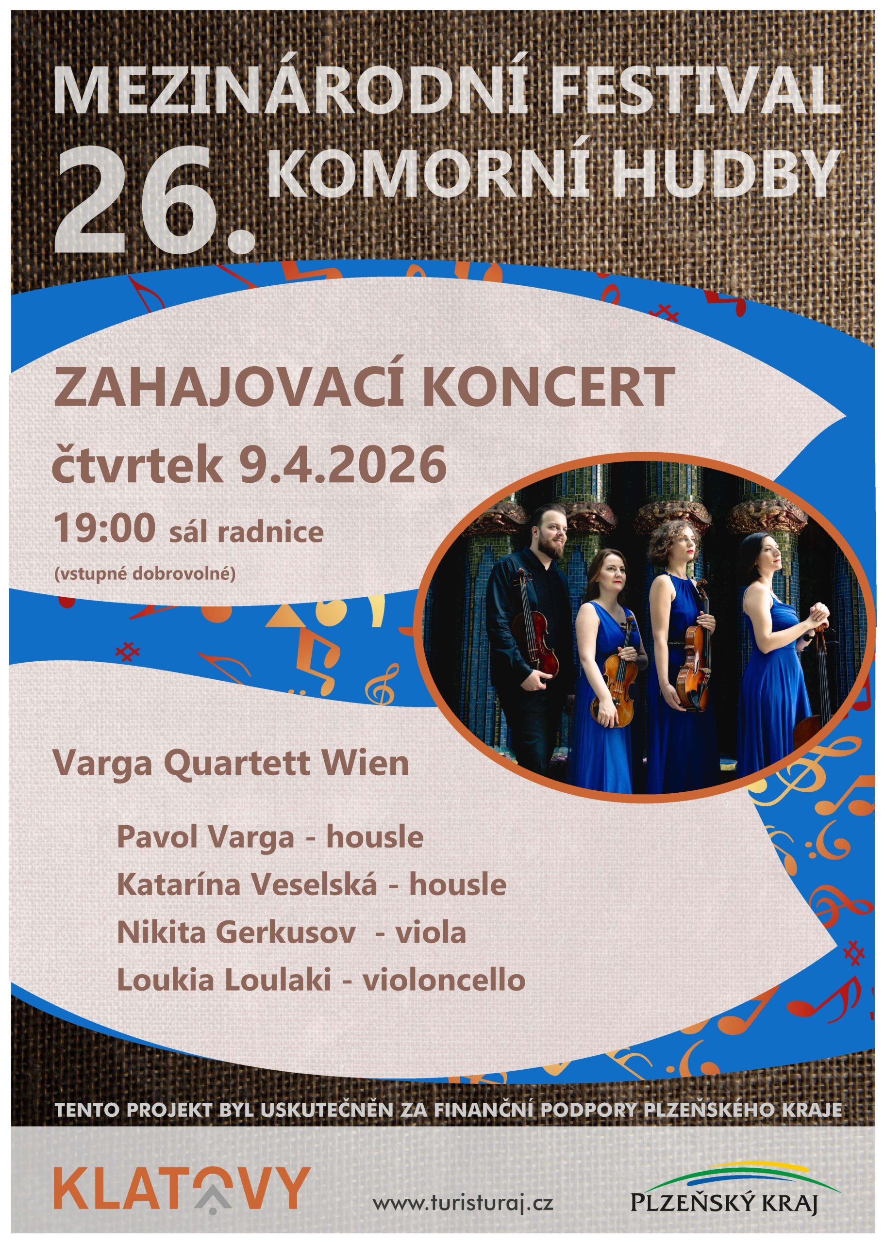 Zahajovací koncert 26. Mezinárodního komorního festivalu v Klatovech se bude konat 9. dubna na klatovské radnici